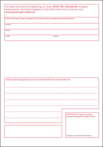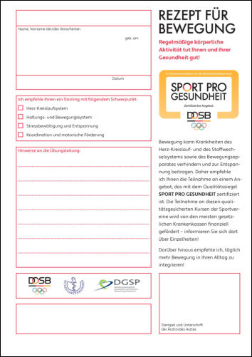 gung - eine „Verordnung“ in Form des „Rezepts für Bewegung“ unterstreicht Ihre Empfehlung.
