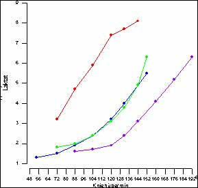 meisten Sportlern in der Nähe einer Laktat-Konzentration von 4 mmol/l.